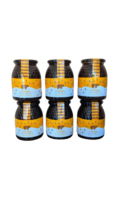 Caja de 6 botes de miel de Alta Montaña, Multifloral, en formato de 1 kg.